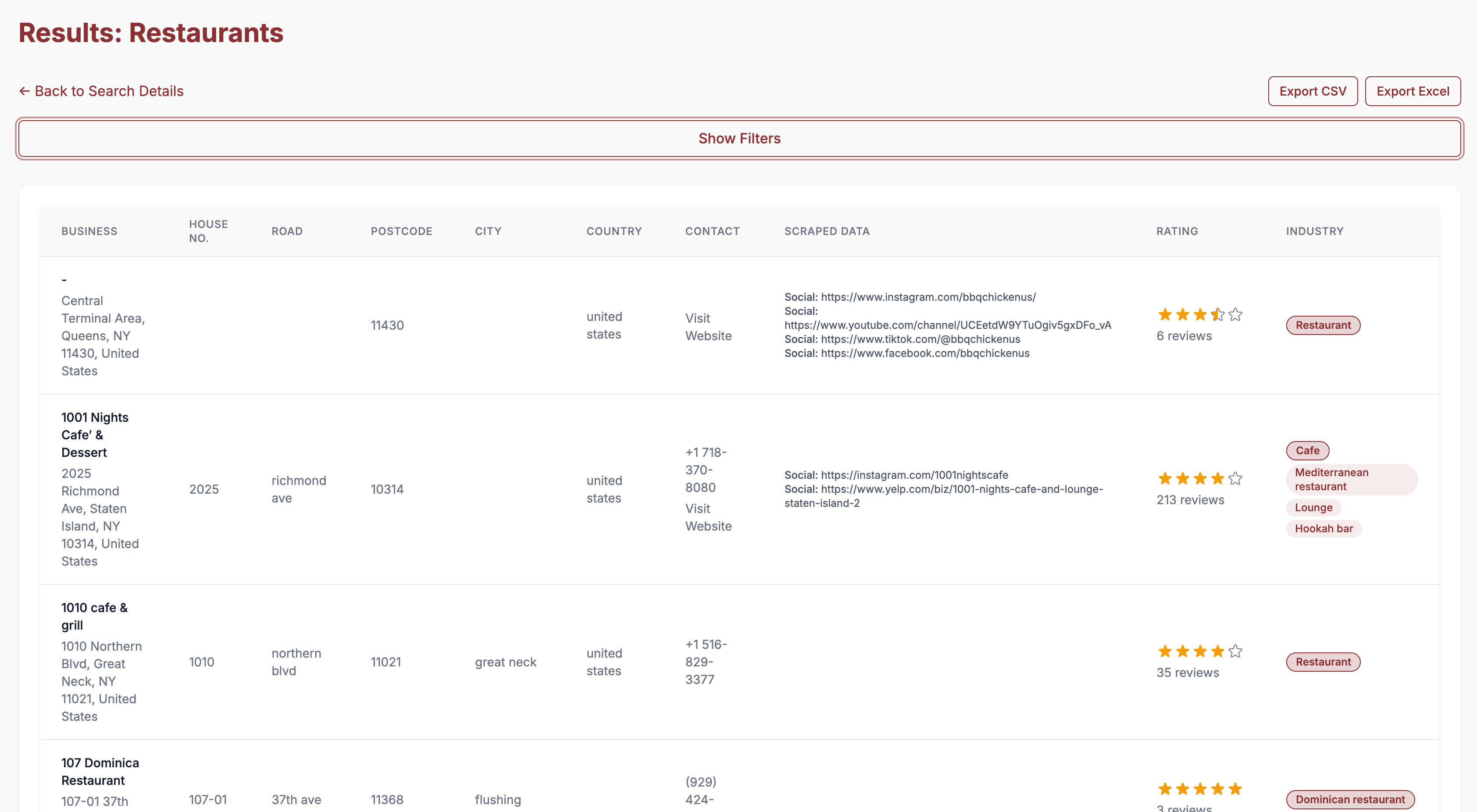 - Get emails + social media links from their websites