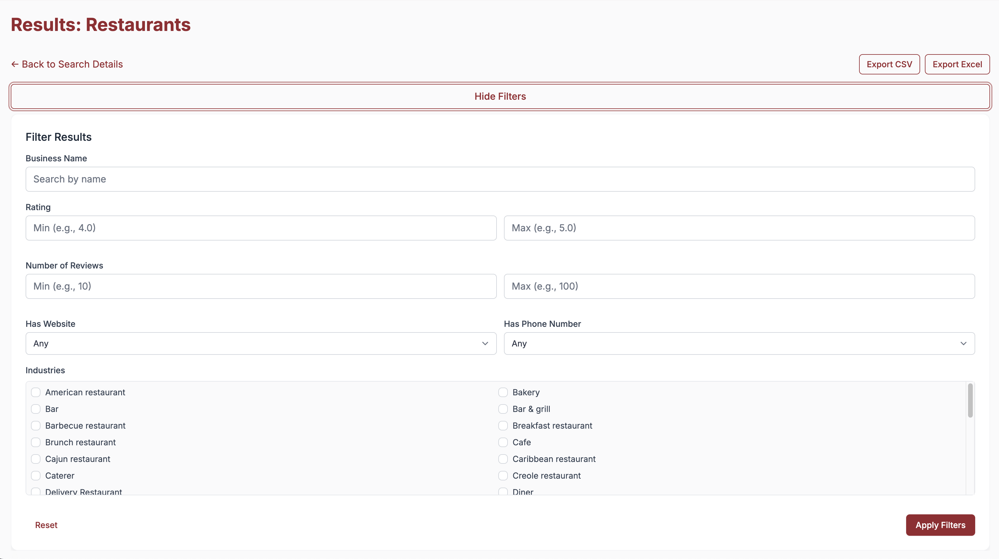 - Business Type: "Restaurants"